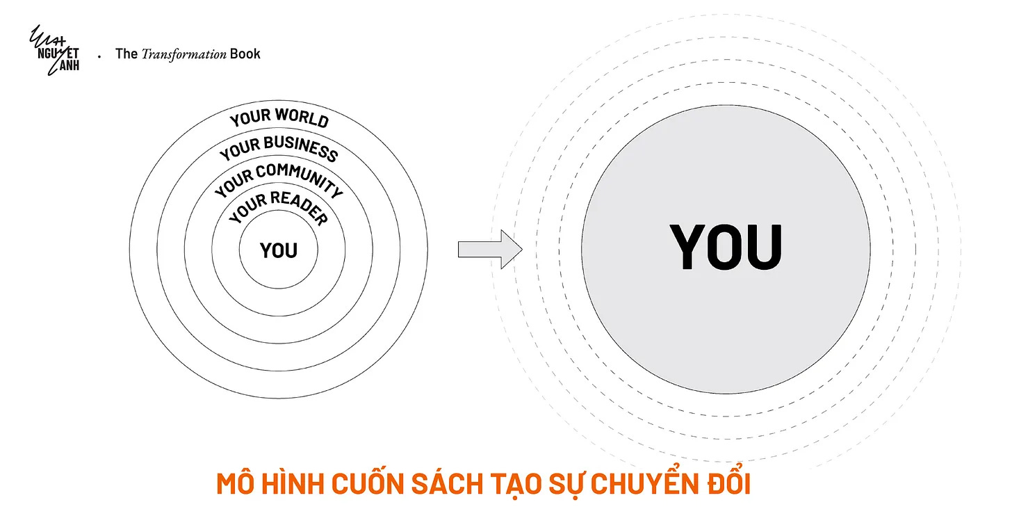 Trong mọi cuốn sách thực sự có sức nặng, luôn có một sự thật sâu thẳm ẩn sau con chữ: cuốn sách ấy đã chuyển hóa chính người viết ra nó trước khi truyền cảm hứng cho bất kỳ ai khác. Trong mô hình The Transformation Book mà mình đúc kết, sự chuyển hoá diễn ra ở tầng đầu tiên là đối với tác giả, trong xuyên suốt quá trình cuốn sách được thực hiện và trước tất cả các tầng bên ngoài như độc giả, cộng đồng, lĩnh vực hay thế giới.