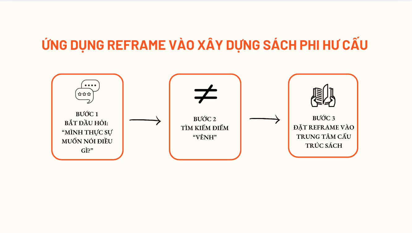 Vậy, làm sao để ứng dụng Reframe vào quá trình xây dựng sách phi hư cấu?